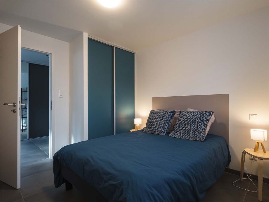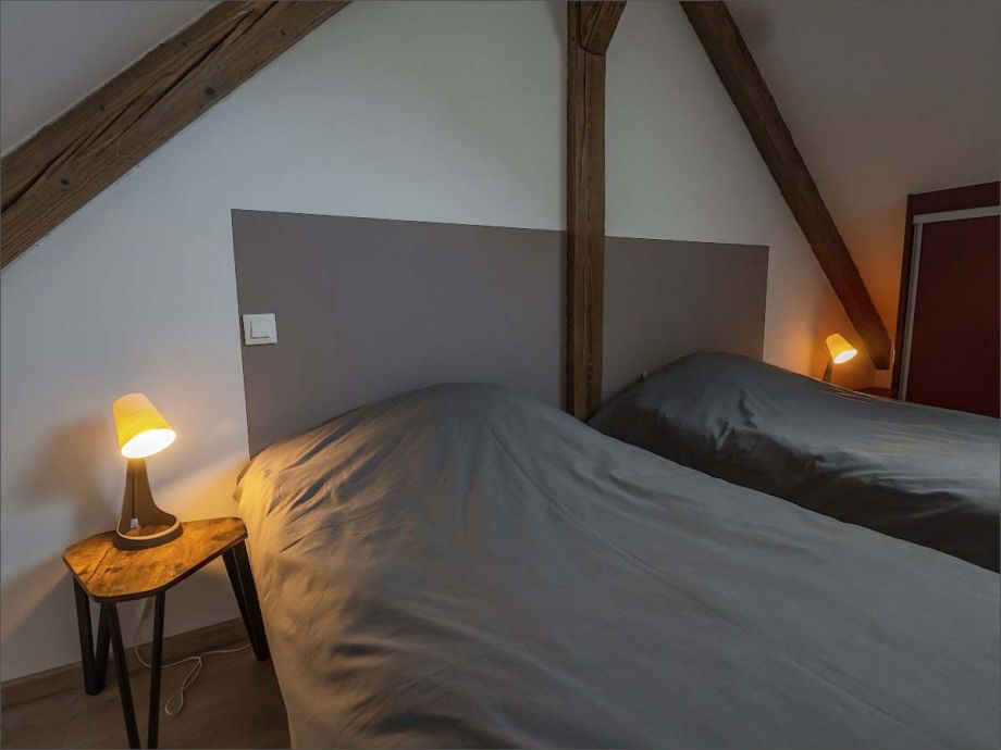 Le gîte comprend 3 chambres à coucher : la première chambre avec 1 lit double, suivi d’une chambre avec 2 lits simples et d’une 3ième petite chambre avec 1 lit simple