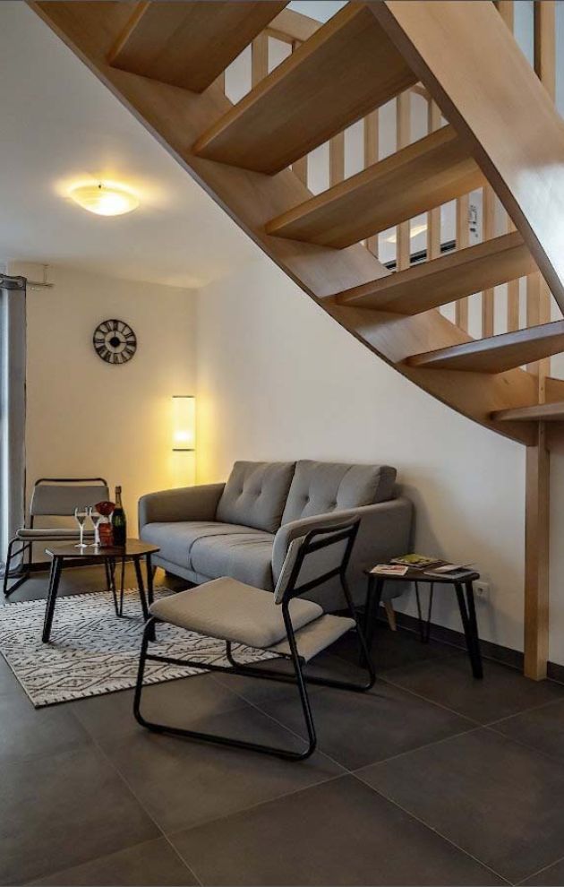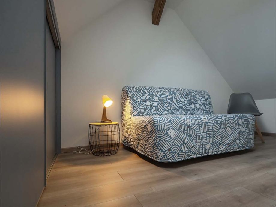 Au 2e étage, une chambre avec 2 lits simples sera idéale pour les enfants. Une salle de détente avec un canapé convertible y est également disponible, vous faisant bénéficier d’encore plus d’espace et de confort selon vos aspirations.
