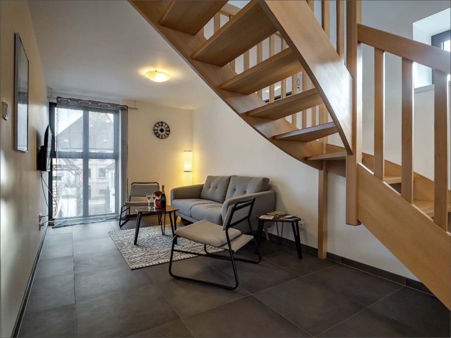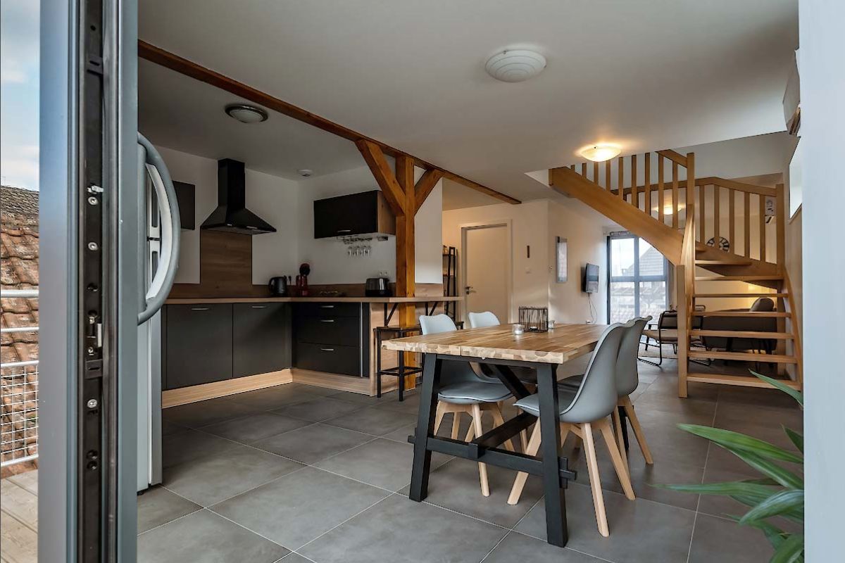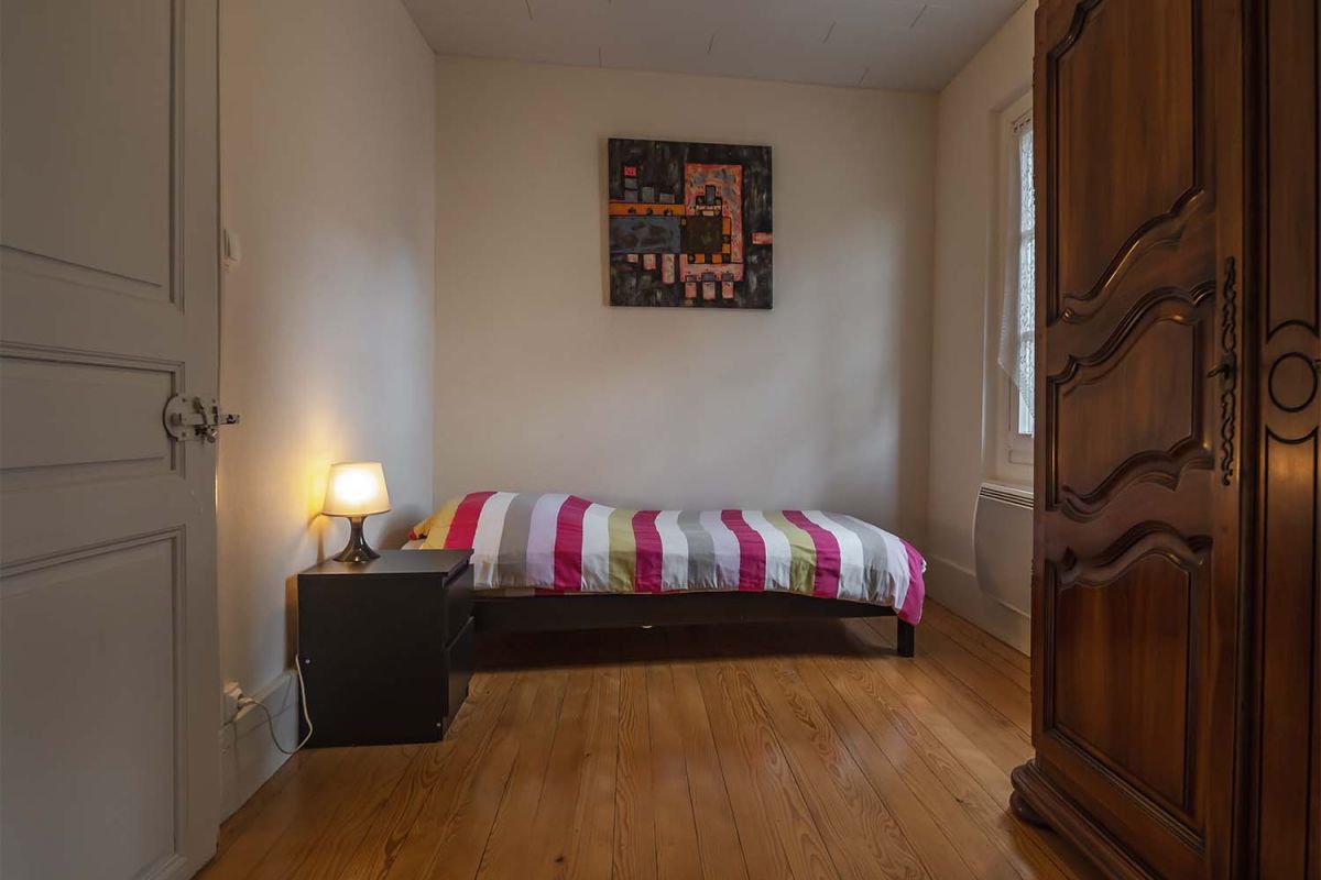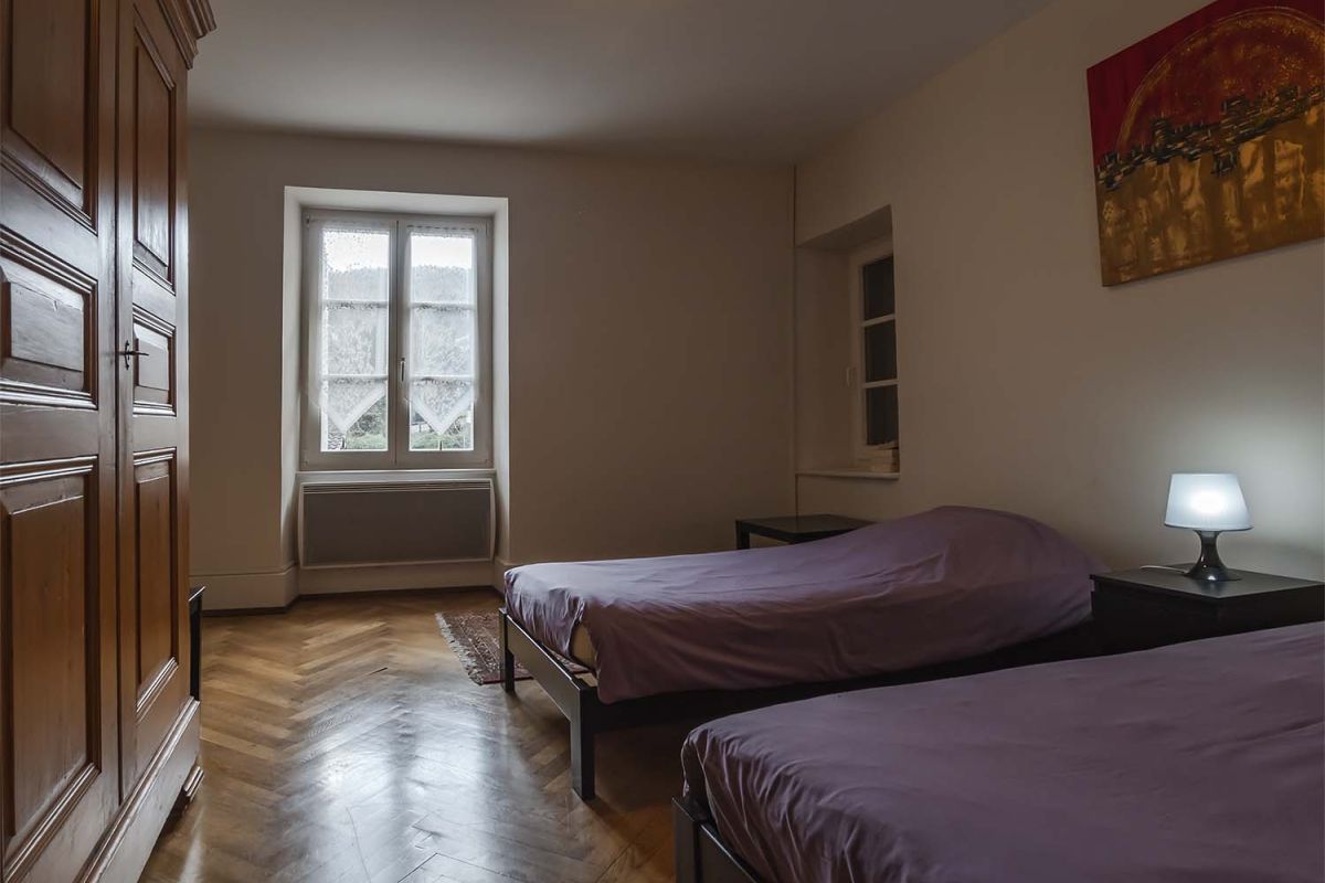 Le gîte pour 4-5 personnes, très spacieux, se trouve au 1er étage, et l’ensemble des pièces se suivent en enfilade.